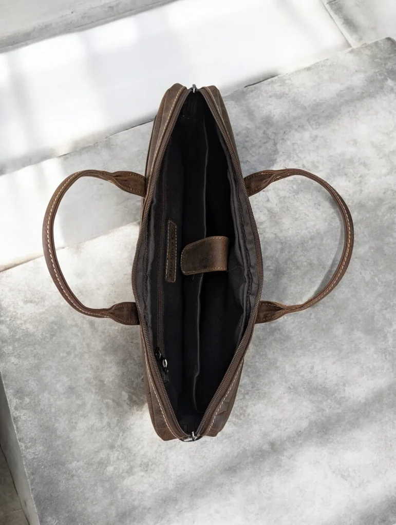Designed to carry your laptop and daily essentials with ease, the structured interior offers protection, organisation, and comfort on the move. From the office to business trips and everyday commuting, this bag is a reliable companion that matures beautifully over time, developing a rich patina unique to you.